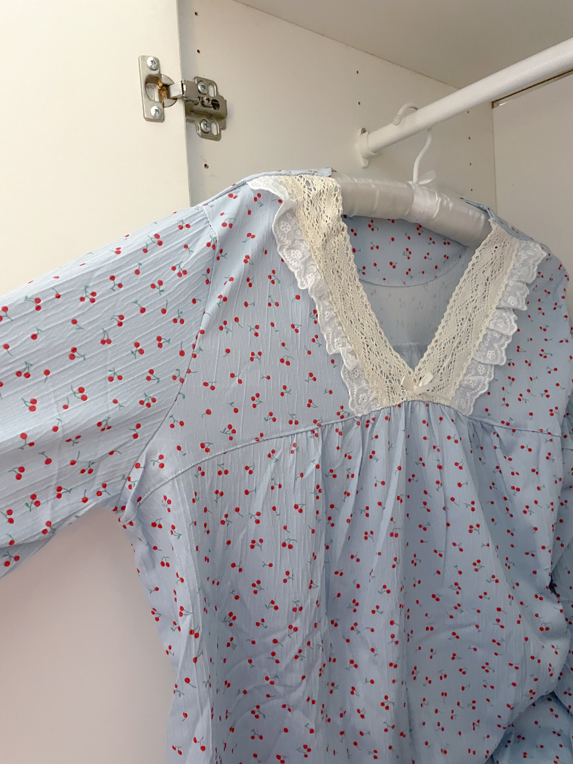 Comes as a set. comfy pants + full-sleeve cherry lace top.